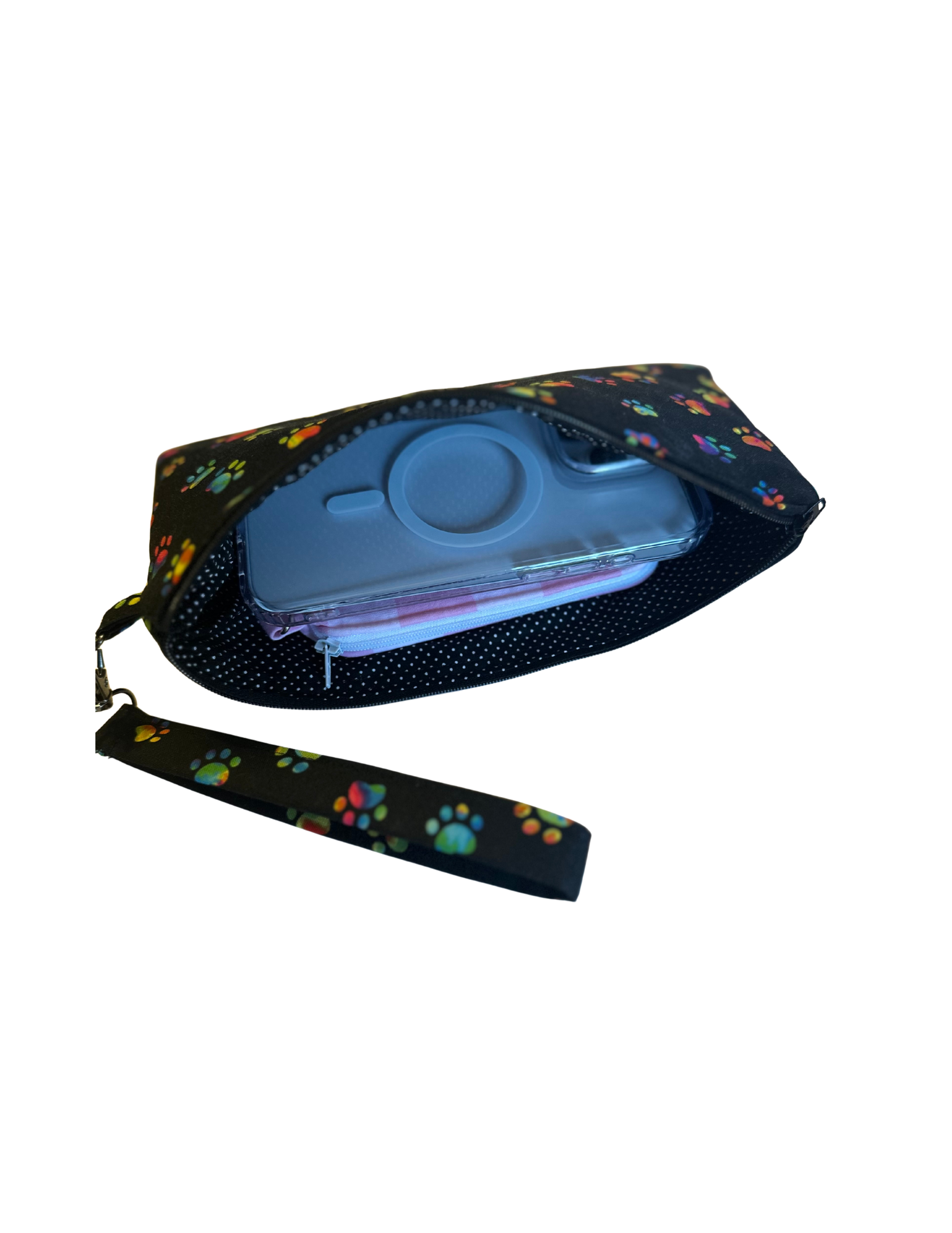 Picture features an Iphone 16pro and a mini wallet + keychain for size reference.